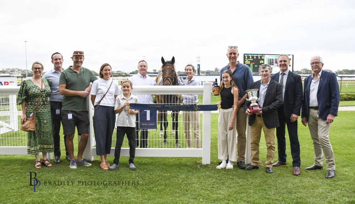 Crop Duster put the writing on the wall with a gutsy performance when an unlucky second on the track in his previous start. He travelled three wide with no cover that day and kept coming. The five-year-old was the $3.70 favourite on Saturday and jockey Andrew Adkins gave him the perfect run in fourth place before making ground near the home turn. Crop Duster proved to be the strongest on the closing stages, beating Dreamdeel by .67 of a length with Dances With Hooves third. Crop Duster bred by former Newcastle Jockey Club Chief Executive Matt Benson and was raised by his trainer Jeremy Gask on the Hunter Valley property where the trainer lives with wife Kerri a part owner of the horse along with Benson and other Newcastle Novocastrians. Crop Duster has won five races, three at Newcastle for prizemoney of $151,075. Gask was confident of victory and praised Adkins’ ride.