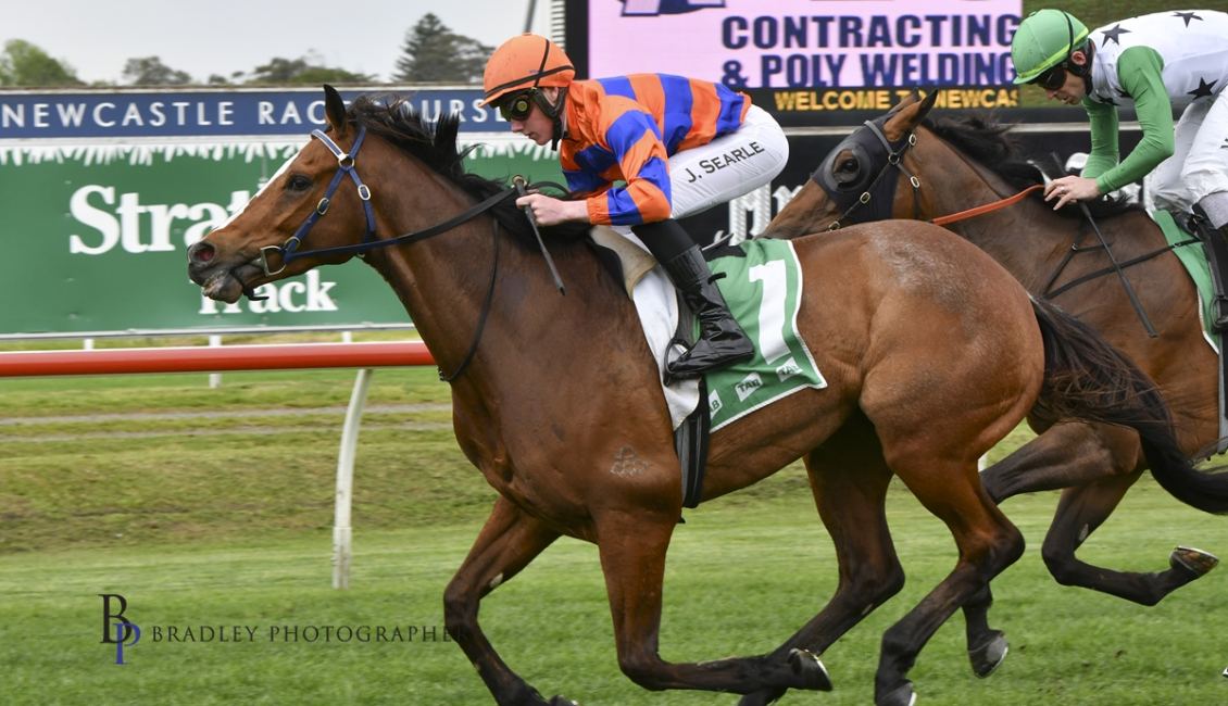 Newcastle Jockey Club Chairman Geoff Barnett and his wife Maureen were amongst the owners celebrating after the win of Mydeel in the opening event, the 1600m Open Handicap at Saturday’s Newcastle meeting. Mydeel recently purchased online by his current owners was originally handicapped on 61kg however, new trainer Rod Ollerton engaged 3kg claiming Sydney apprentice Jackson Searle to reduce the impost. Searle was trapped three-wide with no cover early in the race, so he decided to drag the gelding back to the tail of the field. The apprentice urged Mydeel along 600m from home and he started to make ground around the field. He unwound in the straight and he ran the leaders down to win by a length running away.